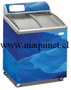 -Conservadora inclinada con tapas deslizables de vidrio curvo templado de baja emisividad con llave.