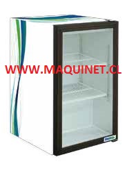 - Puerta abatible con termo panel de doble vidrio, uno bajo emisión y cámara de gas argón, con marco de plástico, sistema de cierre automatico, sello hermetico magnetico. Manilla embutida .